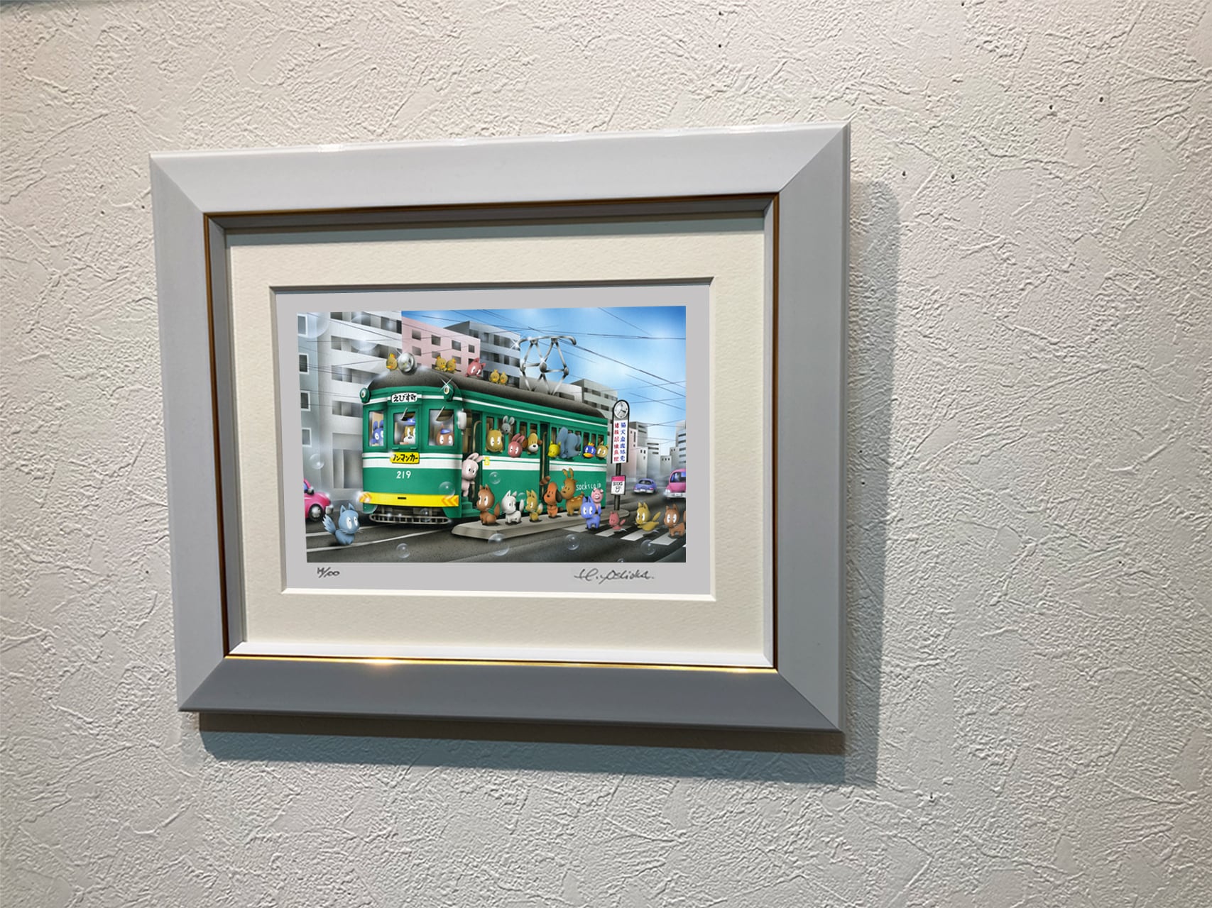 インチ版画『チンチン電車出発するよ!』