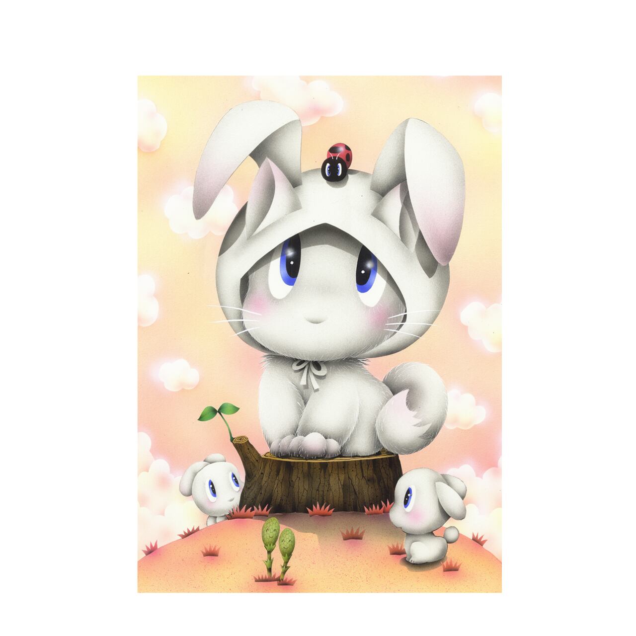 インチ版画『ラブちゃんウサギ帽気に入る』